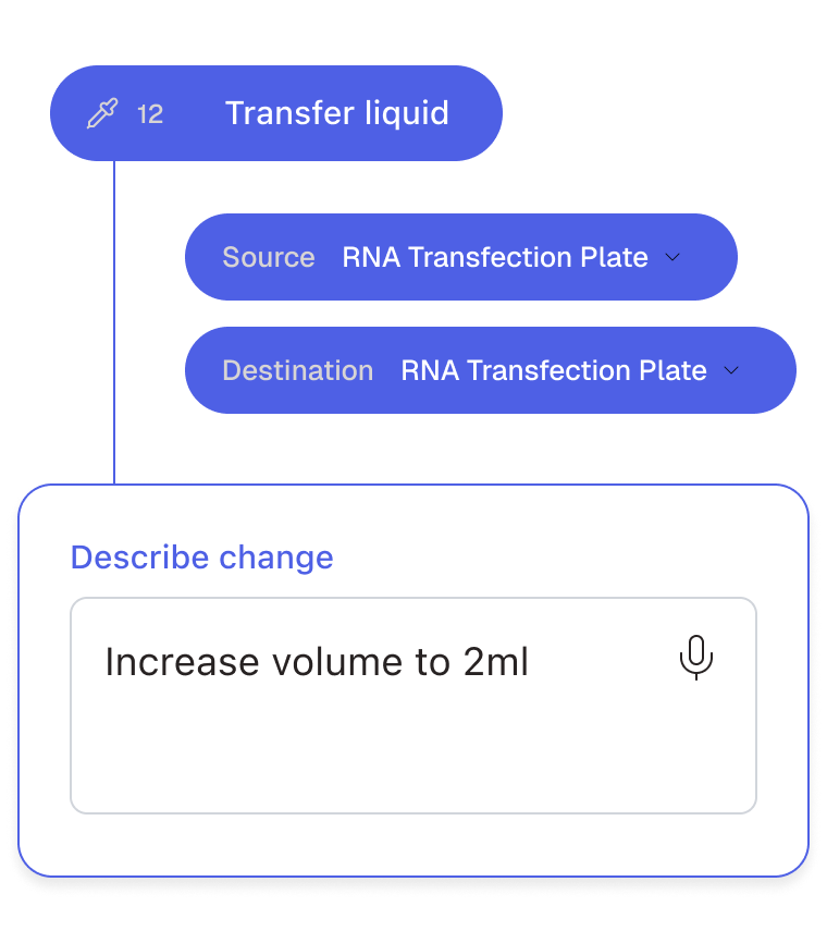 Adjust and edit protocols in plain English, in writing or with your voice.